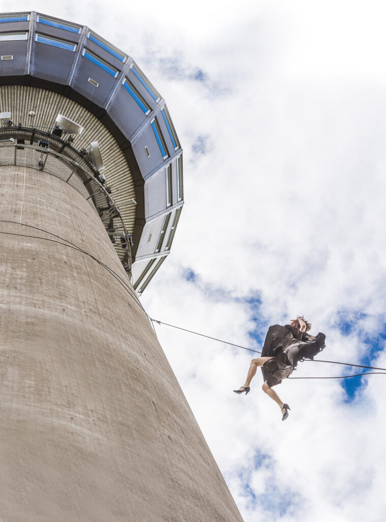 They dance on ropes in the most imaginative places: historic and new buildings, indoors and outdoors, on bridges, towers, cranes, but also in theaters, museums and industrial environments.